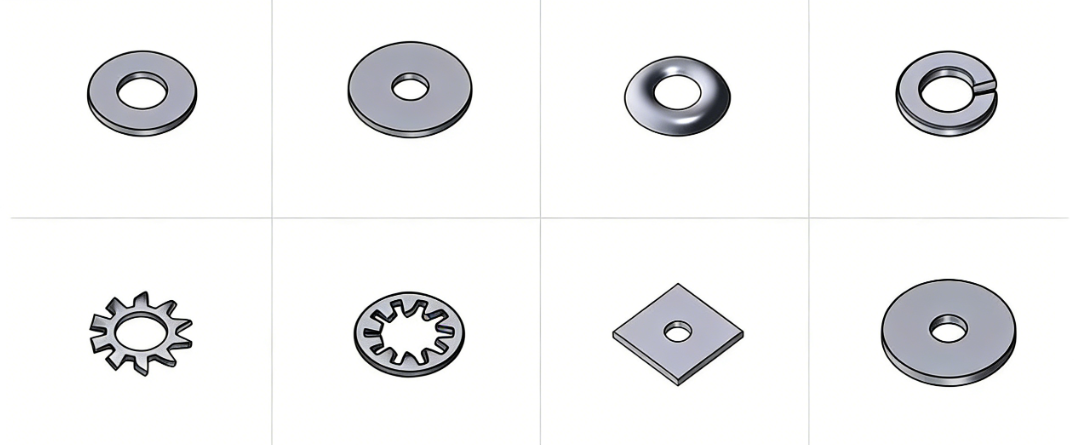 ④ Joissakin aluslevyissä on erikoisrakenne, joka estää mutterin löystymisen. Nämä tunnetaan yleisesti lukkolevyinä, ja niitä on eri kokoonpanoissa – uritettuja, tähden muotoisia, aaltomuotoisia ja paljon muuta. Tällaisia lukkoaluslevyjä on käytettävä yhdessä muttereiden kanssa.